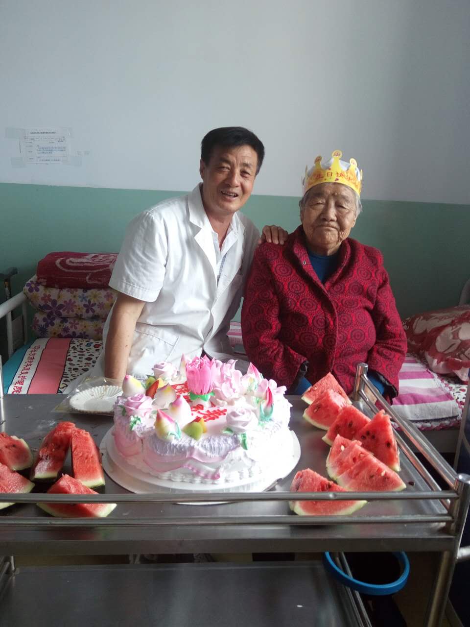 图3:护理员与寿星合影
